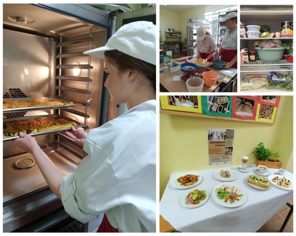 Kolejne zajęcia związane z wyborem kierunku kształcenia i zawodu tym razem promujące zawód kucharza, odbyły się w naszej szkole 19 marca 2025 r. w ramach projektu „Ukierunkowani na karierę”. Na zajęcia w ramach projektu zakupione zostały zakupione zostały produkty spożywcze z których uczestnicy wykonali zaplanowane potrawy. Podczas zajęć uczniowie zapoznali się ze specyfiką zawodu oraz  zdobyli praktyczne umiejętności niezbędne w zawodzie kucharza.