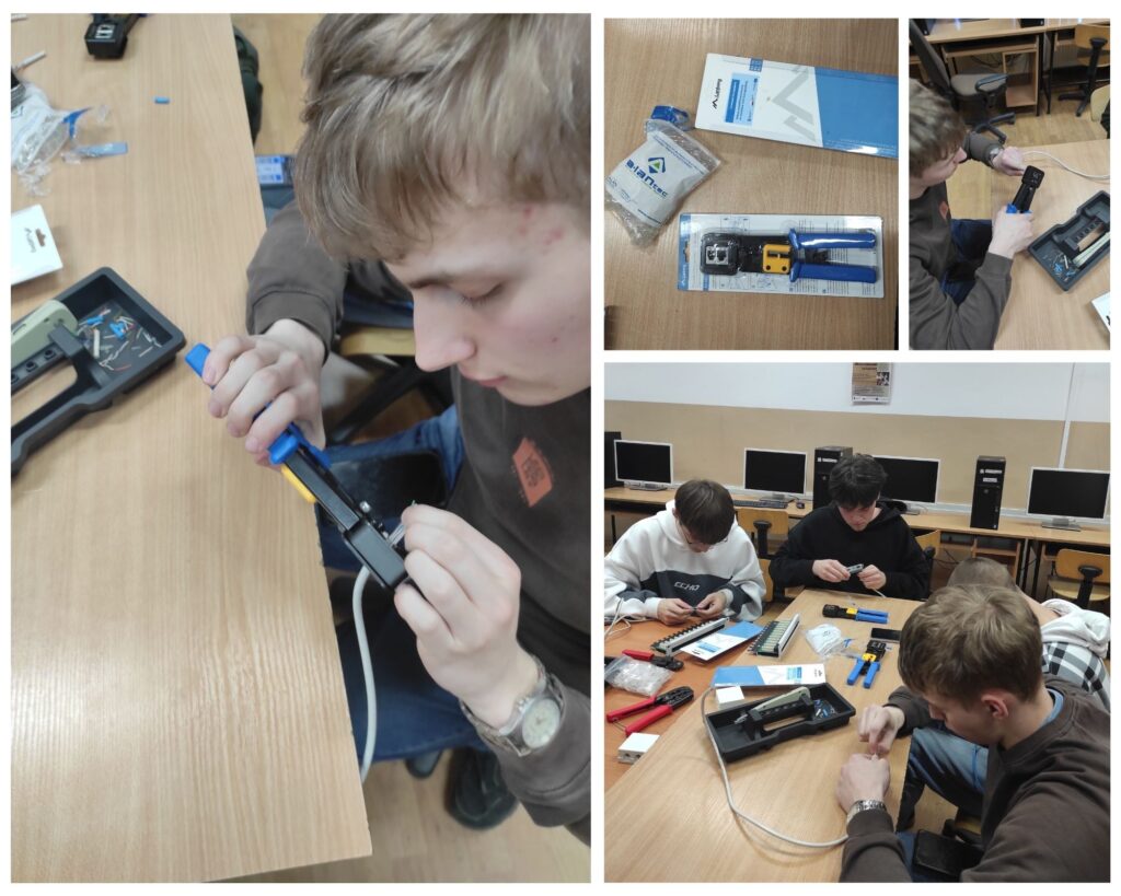 20 marca 2025 r w ramach projektu „Ukierunkowani na karierę” odbyły się w naszej szkole kolejne zajęcia związane z wyborem kierunku kształcenia i zawodu tym razem promujące zawód informatyka. Podczas zajęć uczniowie poznali specyfikę pracy informatyka oraz nabyli umiejętność zarobienia kabla sieciowego, przetestowania go przy pomocy testera oraz zbudowania prostej sieci LAN z wykorzystaniem dostępnego sprzętu.