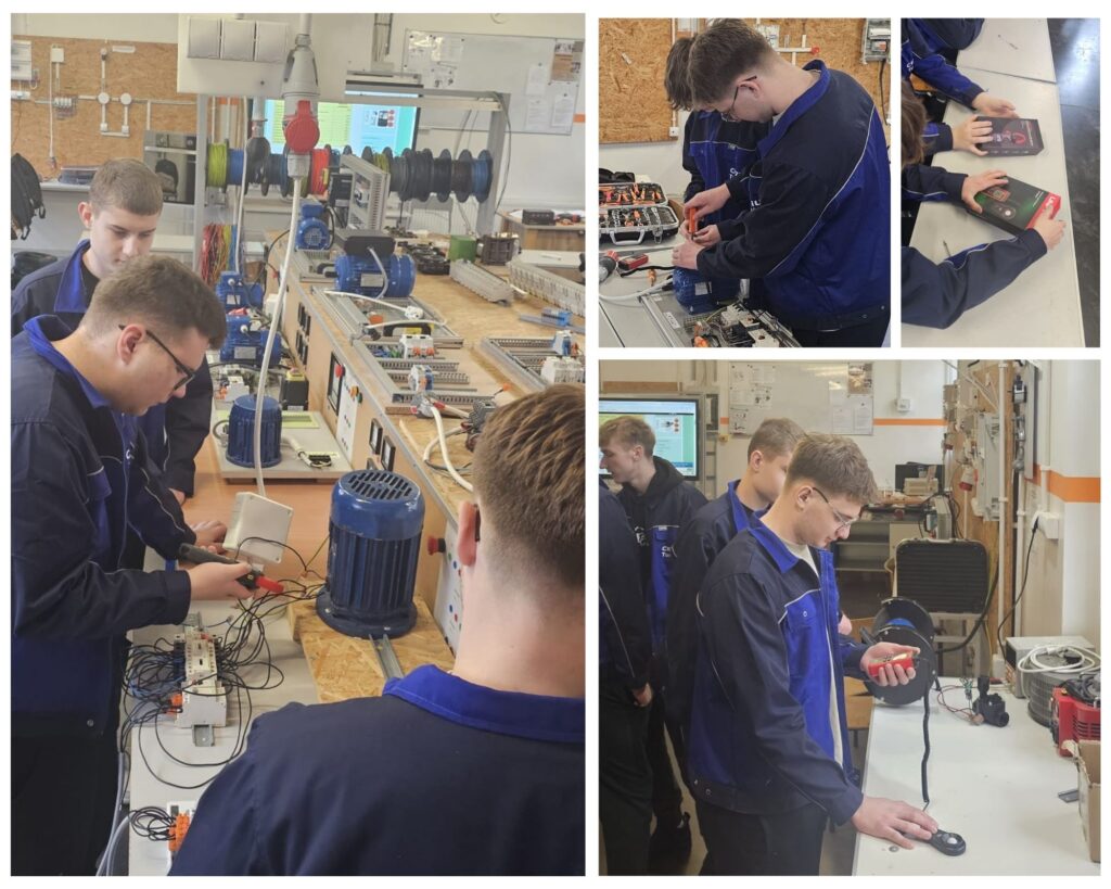 31 marca 2025 r w ramach projektu „Ukierunkowani na karierę” odbyły się w naszej szkole ostatnie już zajęcia związane z wyborem kierunku kształcenia i zawodu tym razem promujące zawód elektryka. Podczas zajęć uczniowie poznali specyfikę pracy elektryka oraz nabyli umiejętności wykonania prostych układów instalacji elektrycznych i układów sterujących pracą silników, wykonania pomiarów parametrów prądu miernikiem cęgowym oraz wartości oświetlenia światłomierzem.
