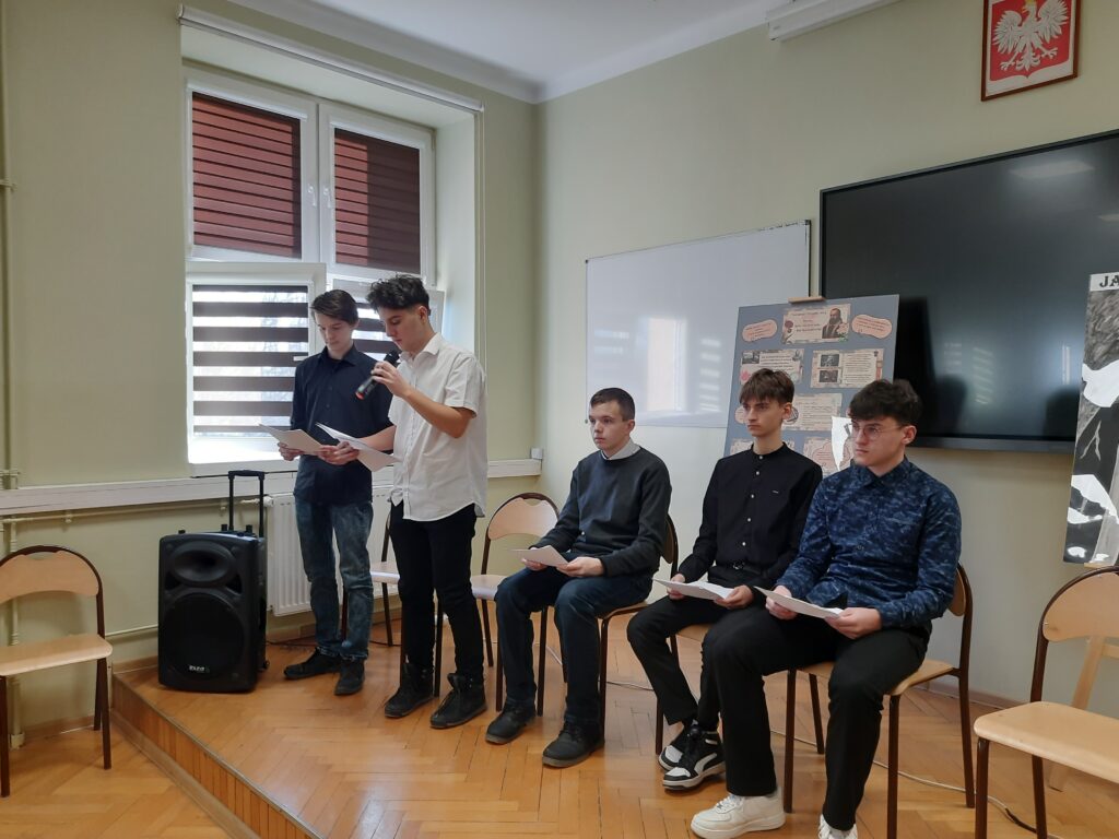 Po raz kolejny została zorganizowana edycja ogólnopolskiej akcji ,,Narodowe czytanie”. Uczniowie klas 1Tb, 3 Tc i 4 Td przygotowali recytację fraszek, pieśni i trenów Jana Kochanowskiego pod kierunkiem mgr Anny Górskiej. Znalazły się wśród nich utwory zabawne i przewrotne , rozważania nt. obowiązków wobec ojczyzny i przemijania człowieka, jak i wyrażające zwykłe, ludzkie uczucia. Słowa poety brzmią niezwykle aktualnie, jakby napisane dopiero wczoraj… Wszystkim uczniom, którzy wystąpili, gratulujemy i zapraszamy do udziału w kolejnych występach…