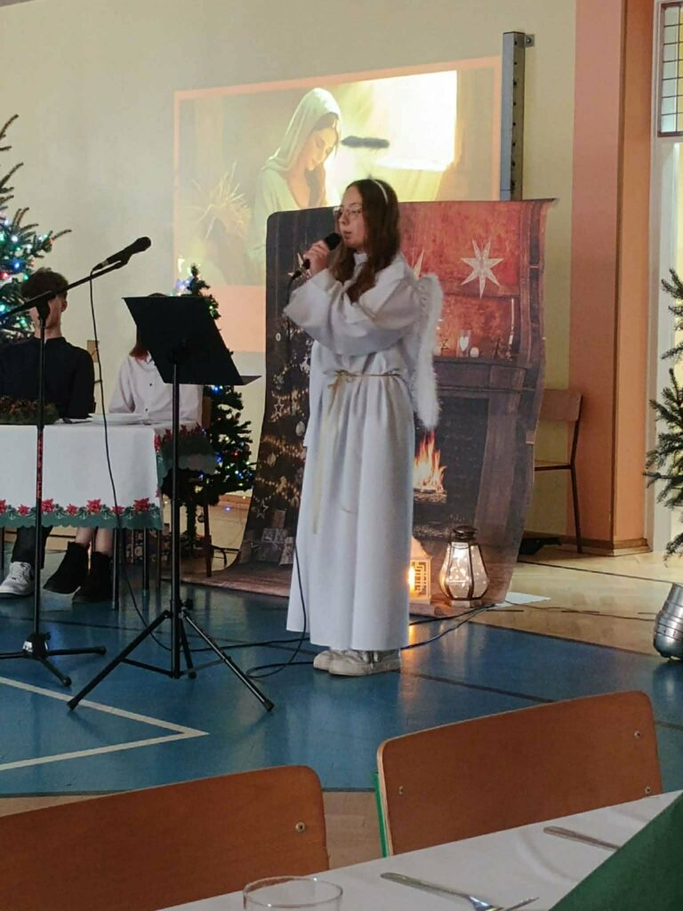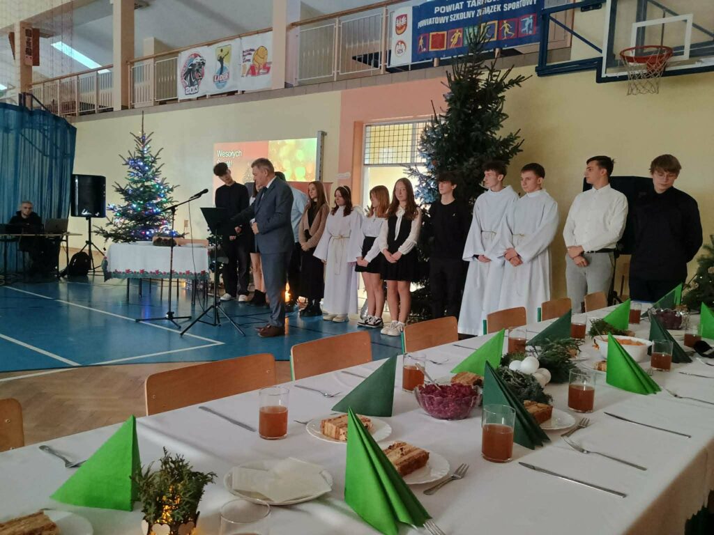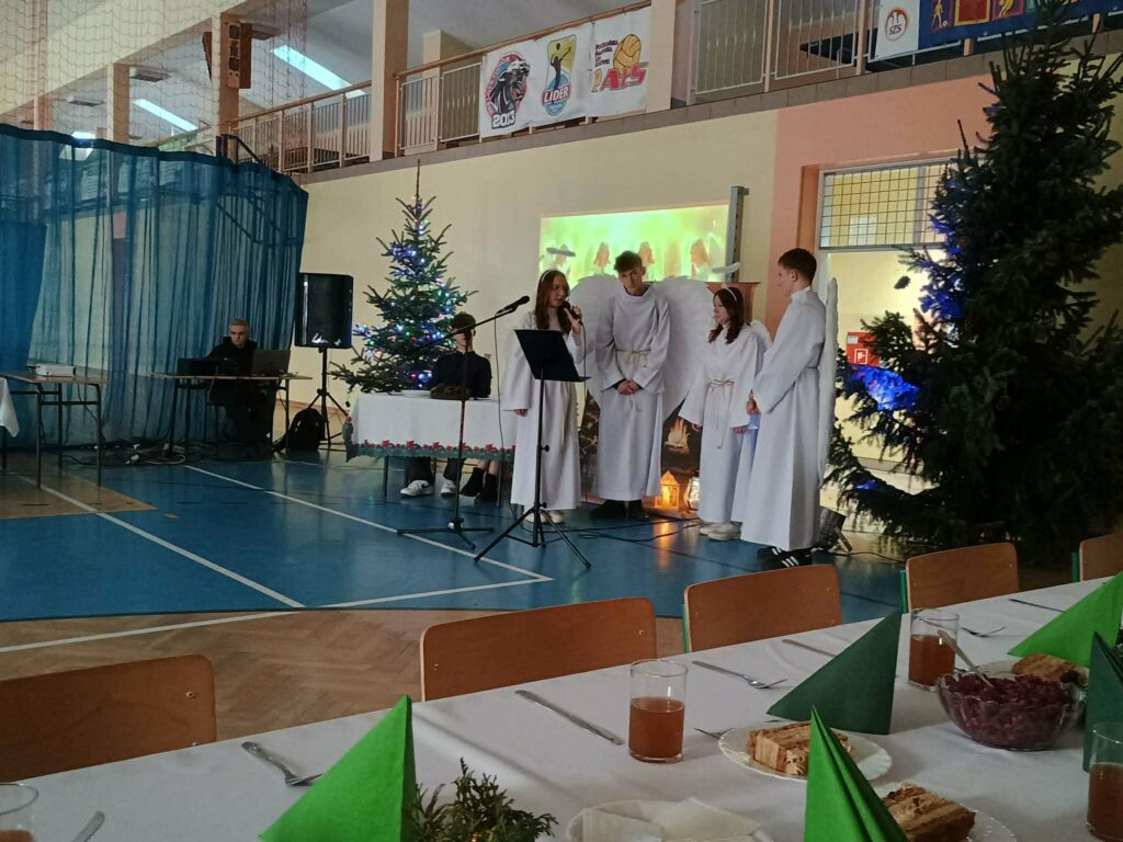 W przedświątecznej atmosferze w naszej szkole odbyło się uroczyste spotkanie wigilijne całej społeczności szkolnej. Wydarzenie było okazją do wspólnego przeżywania magii nadchodzących Świąt Bożego Narodzenia.