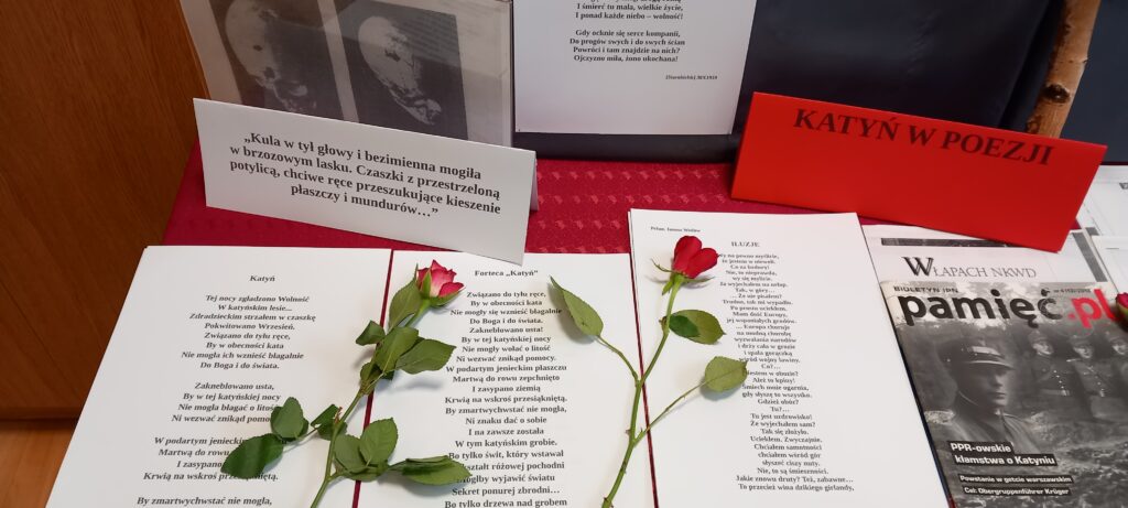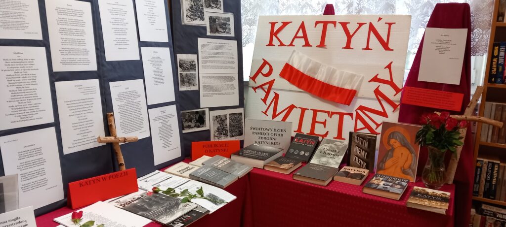 W 86. rocznicę tych wydarzeń w bibliotece szkolnej została zorganizowana wystawa pt. „Katyń – Pamiętamy”. Zgromadzone materiały ilustracyjne, źródła historyczne i literackie, pokaźny wybór poezji pozwalają na pokazanie tematyki katyńskiej w szerokim kontekście historycznym.  Zapraszamy do odwiedzania wystawy i wypożyczania książek dostępnych w naszych zbiorach.