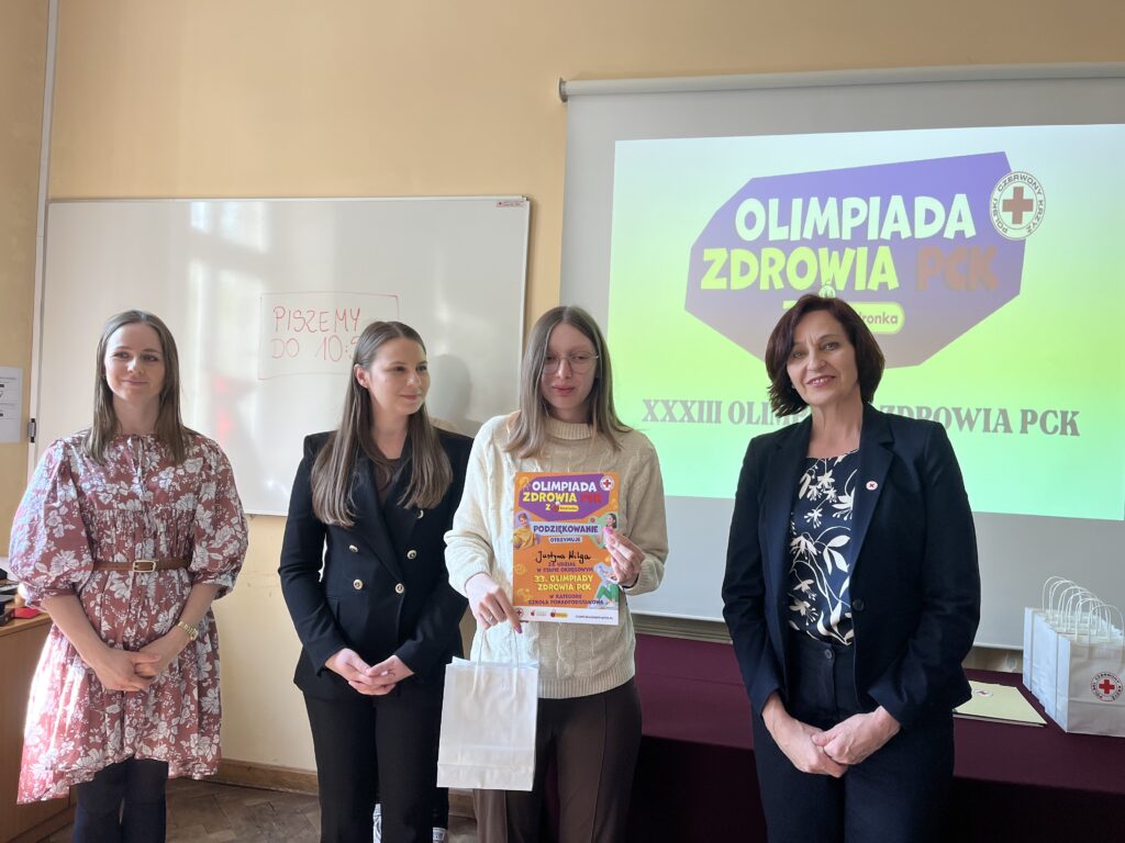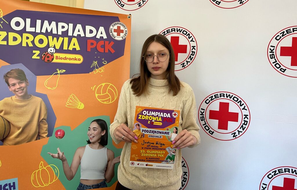Dnia 10. kwietnia w Krakowie odbył się etap okręgowy 33. Ogólnopolskiej Olimpiady Zdrowia PCK z Biedronką. Do etapu okręgowego zakwalifikowali się zwycięzcy etapów rejonowych. Powiat tarnowski reprezentowała uczennica naszej szkoły – Justyna Wilga z klasy 4Tc. W etapie okręgowym musiała się zmierzyć z testem jednokrotnego i wielokrotnego wyboru, który poruszał zagadnienia związane m.in. z prawidłowym odżywianiem i promocją zdrowego stylu życia. Do ogólnej punktacji została wliczona także ocena z dokumentacji akcji prozdrowotnej, którą musiał przeprowadzić każdy uczestnik etapu okręgowego w swojej szkole. Uczestniczy wysłuchali również prelekcji przeprowadzonej przez pana Szczepana Badowskiego koordynatora sekcji „Krwiożercze Morsy”, który opowiedział o zaletach morsowania i działaniach KKM „Kaloryfer” na rzecz krwiodawstwa. Celem olimpiady było wykształcenie wśród młodzieży szkolnej potrzeby dbania o własne zdrowie oraz kształtowanie umiejętności niezbędnych do ochrony zdrowia innych. Opiekun SK HDK